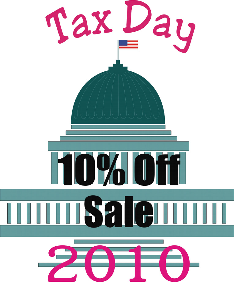 In honor of the 2010 April 15th Tax Day, we are having a 10% off sale. All you have to do is enter coupon code TAXDAY into the coupon area during checkout to receive 10% off your purchased items. (Shipping excluded). Coupon code is good through April 15, 2010.